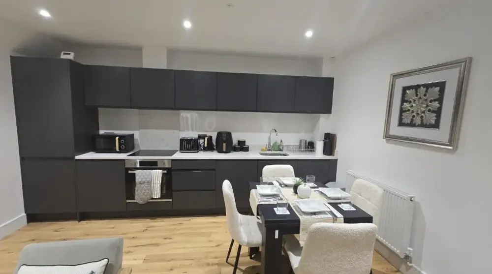 More information about Victoria HouseThis two-bedroom house in Leeds city center offers free Wi-Fi throughout along with complimentary airport transfers and secure on-site parking. Families traveling with infants can request a free crib upon arrival. Located just steps away from essential transit links, guests have quick access to Leeds City Railway Station—a mere 2-minute drive—and seamless connections beyond.